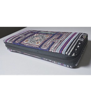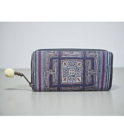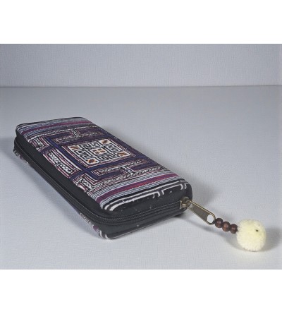 Cartera de mano con billetera, con tejidos bordados a mano por las mujeres de la tribu Hmong en Tailandia.