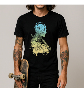 Camiseta negra fabricada en algodón 100% con estampado anatomía geométrica.