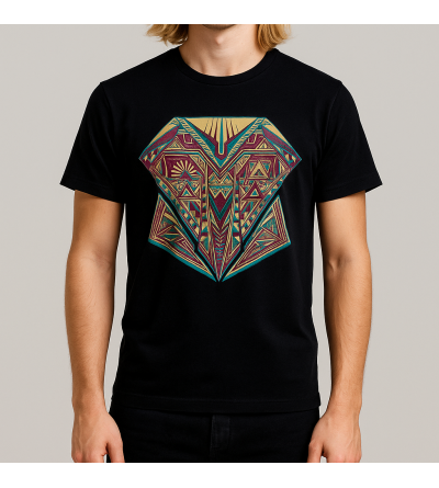 Camiseta negra fabricada en algodón 100% con estampado de diamante vectorizado futurista.
