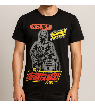 Camiseta fabricada en 100% aldodón con R2-D2 y C-3PO.