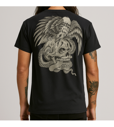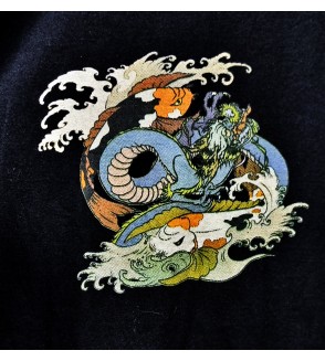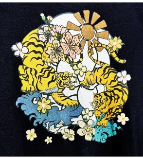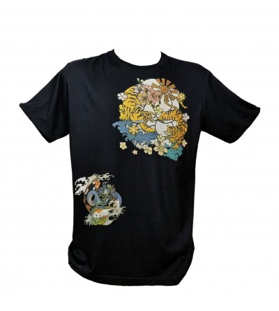 Camiseta negra fabricada en algodón con motivos japoneses.