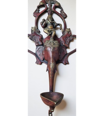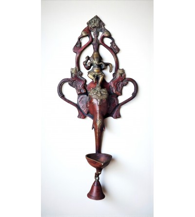 Colgante de Pared de Bronce con Ganesha y Lámpara de Aceite