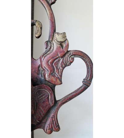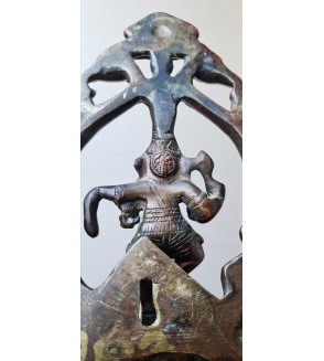 En la parte superior está el rostro de Kirtimukha, cuyo significado es "rostro glorioso" y se utiliza para proteger los templos y espacios sagrados.