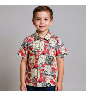 Camisa para niños fabricadas en algodón de India con estampado de leones y tigres.