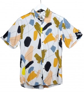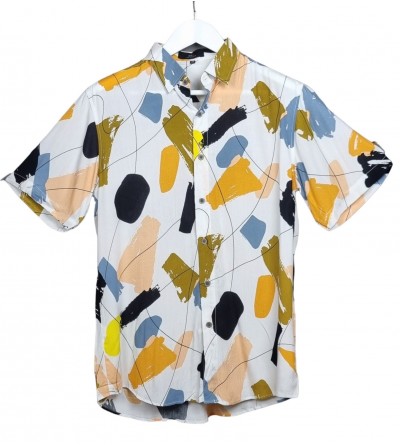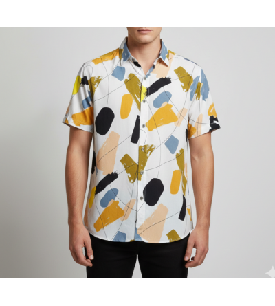 ¿Arte o moda? No tienes que elegir. Nuestra nueva camisa estilo print brushstroke trae la frescura que pides al verano con un estampado de pinceladas que no pasa desapercibido. Tonos mostaza, negro, amarillo y azul pizarra sobre blanco para un look que funciona igual de bien en una terraza que en la oficina creativa.