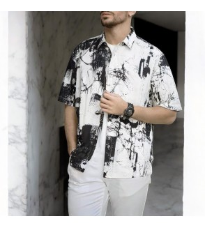 Camisas fabricada en viscosa con estampado abstracto en blanco y negro